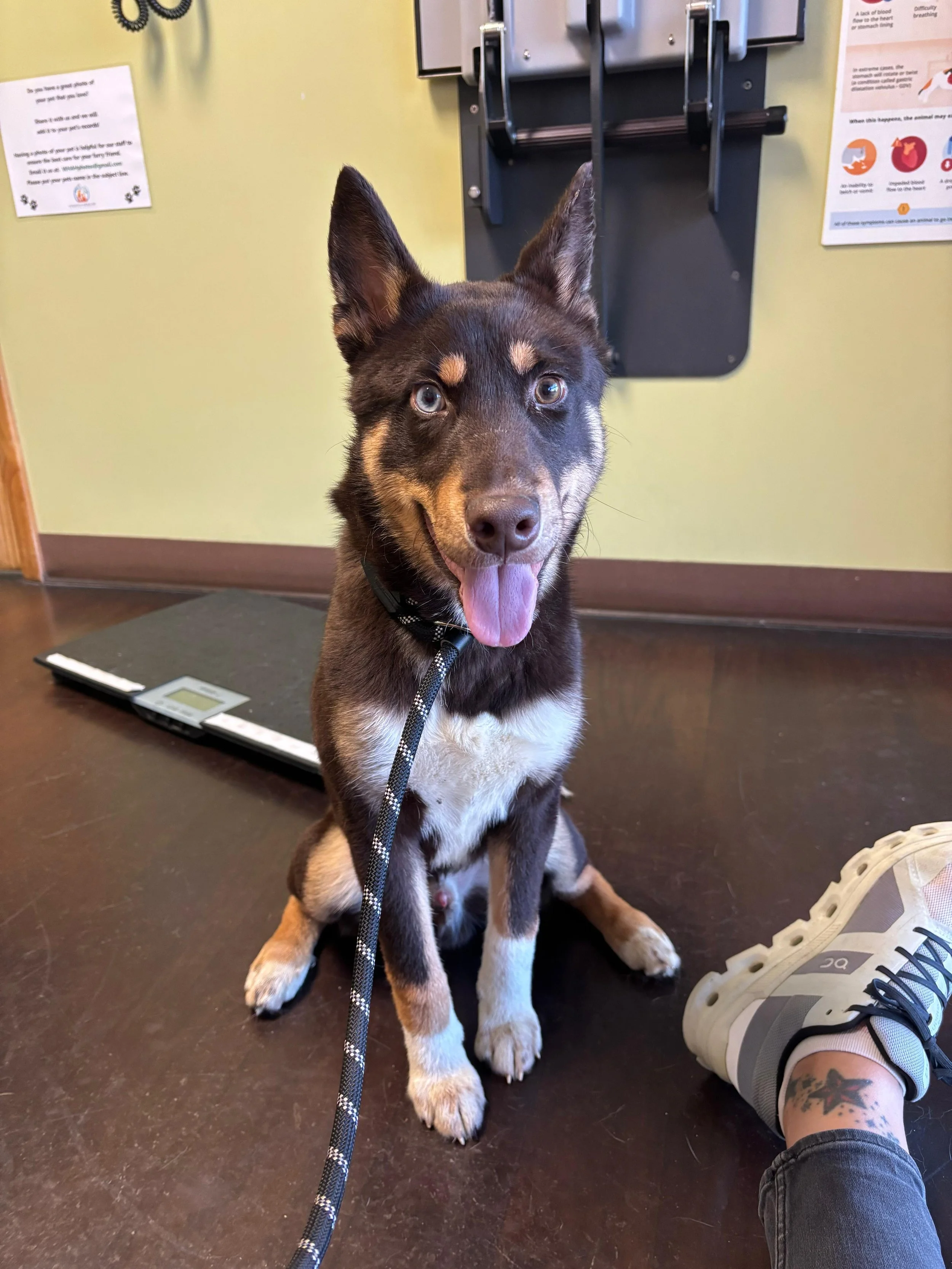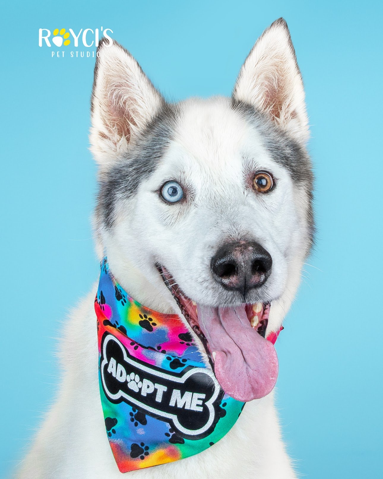 Diz is a 5-month-old husky mix. This sweet boy has some neurological quirks that make him a little unsteady on his feet — a cute, endearing wobble that just makes him extra Diz-zy. He’s currently being evaluated by our veterinary team to see if there’s anything more extensive going on, but for now he’s simply a happy, goofy pup figuring out life one wobbly step at a time.